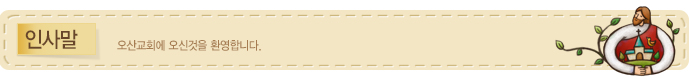 | ¿ì¸® ¿À»êÀå·Î±³È¸¸¦ ã¾ÆÁֽŠºÐµé¿¡°Ô °¨»çµå¸®¸ç ÁÖÀÇ »ç¶ûÀ¸·Î ȯ¿µÇÕ´Ï´Ù. |